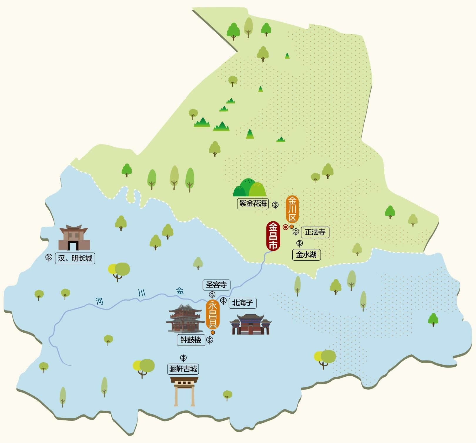 金昌市轄1個(gè)區(qū)、1個(gè)縣: