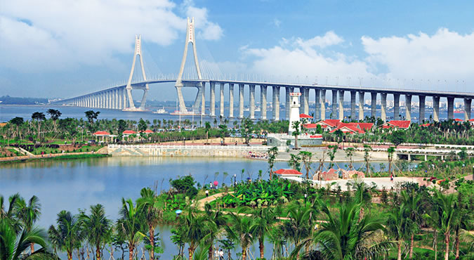 海濱風(fēng)光:中國(guó)大陸最南端極點(diǎn)---徐聞燈樓角,湛江港灣,湛江軍民堤與金沙灣,赤坎金沙灣海濱浴場(chǎng),湛江海灣大橋,海上城市(船),