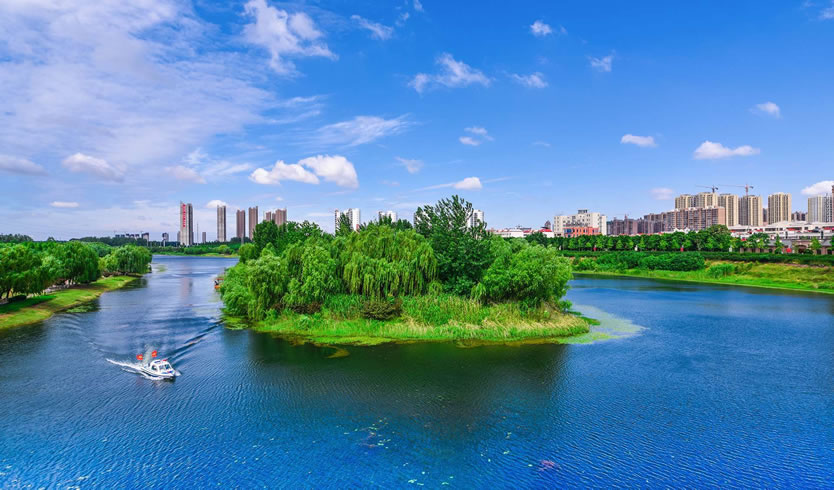 沙澧河風(fēng)景區(qū)具有豐富的景觀要素、厚重的歷史文化積淀以及濃郁的人文生活氣息,景區(qū)內(nèi)沿河岸廣泛布綠,植被覆蓋率達(dá)98%以上,并修建有觀光大道沿河主題公園,沿河八大主題公園是景區(qū)的核心,分別是:西灣晨霞、芳風(fēng)雅頌、覽古涵遠(yuǎn)、醴泉夕照、濠濮快意、馥風(fēng)澄爽、青岫寫秋、揖峰罨畫。構(gòu)建出了“城在水中映,水在綠中行,人在畫中游”的人間仙境。