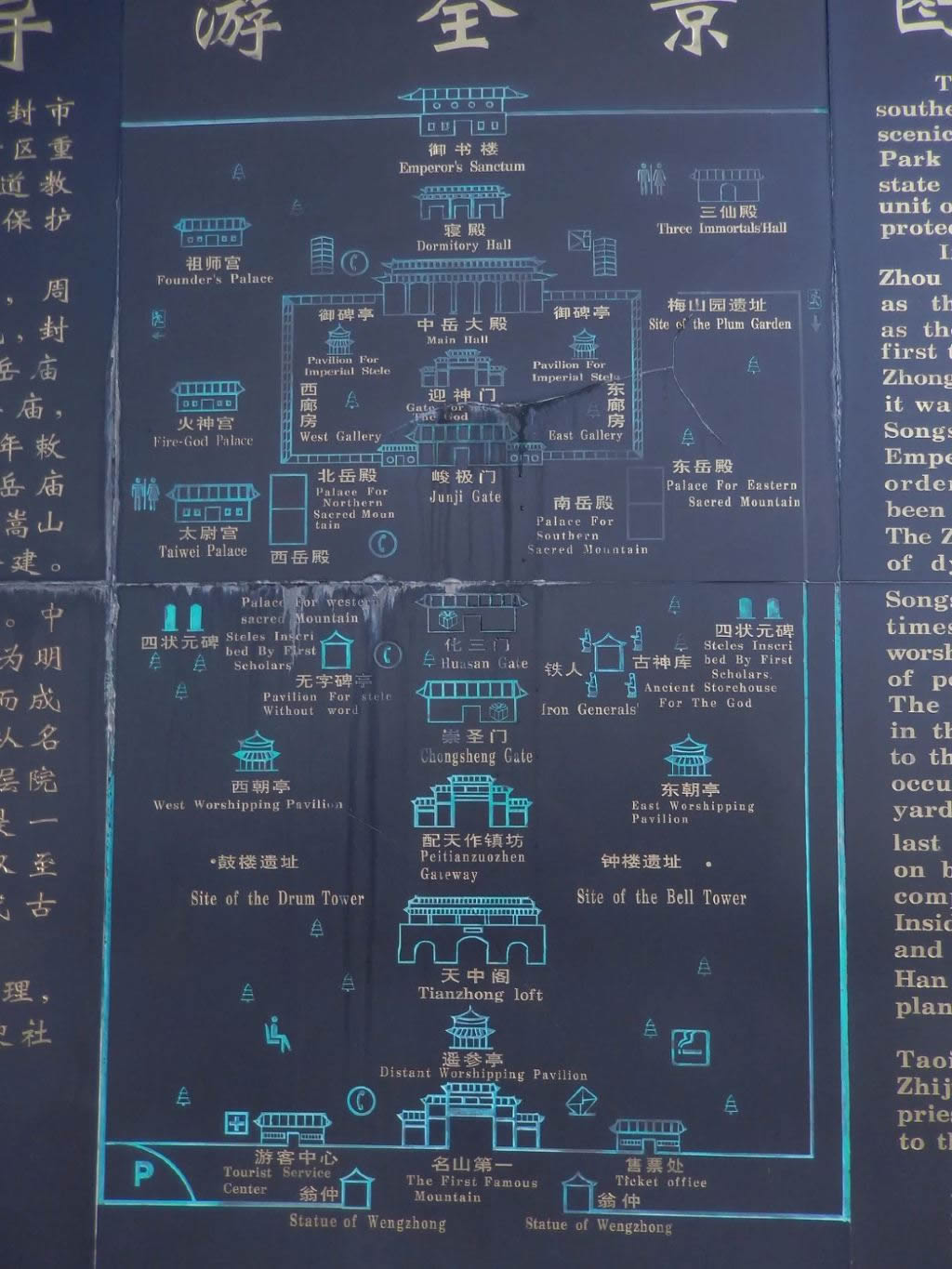 中岳廟沿中軸線依次有中華門(mén),遙參亭、天中閣、崇圣門(mén)、化三門(mén)、崇高峻極坊、峻極殿、寢殿、御書(shū)樓等建筑,共11進(jìn)院落。