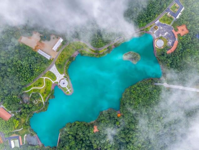 潭面波濤翻滾深不見底,似一飛龍?jiān)跍Y。潭的四周峭壁突兀,地形奇特,置身其間,如入仙境。