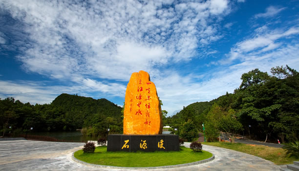 護(hù)源石是2017年紀(jì)念香港回歸20周年時(shí)所立,石碑上“一定要保護(hù)好東江源頭水”為周恩來總理的親筆題詞。1963年,香港遭遇了60多年來最嚴(yán)重的一次干旱,350萬人的生活因缺水陷入困境。當(dāng)年12月,周恩來總理親自批示,撥?钣昧11個(gè)月的時(shí)間在深圳建成了東深供水工程,把東江的水引到香港,從此結(jié)束了香港長(zhǎng)期缺水的歷史。護(hù)源石形狀像一只手掌,寓意用手護(hù)源,石頭高5.23米,與東江流域長(zhǎng)度523公里相對(duì)應(yīng),寬3米,代表贛、粵、港三地;護(hù)源石底座長(zhǎng)4.65米,與三百山到香港的距離465公里相對(duì)應(yīng);花壇采用圓形,寓意“圓圓滿滿”。