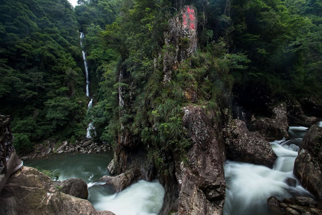 東江第一瀑由福鰲塘和山上大小溪流匯集而成,瀑布單級(jí)落差120多米,是目前景區(qū)發(fā)現(xiàn)單級(jí)落差最大的常流瀑布,氣勢(shì)雄偉,兩側(cè)峭壁凌空,古木參天。飛瀑前方視野開闊,遠(yuǎn)處青山疊翠,林海蒼茫,令人心曠神怡。石壁上東江源三個(gè)字是由全國(guó)政協(xié)原副主席葉選平題寫。
