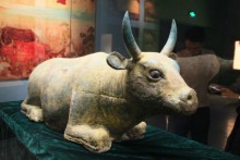 在第177號(hào)陪葬墓的墓室中,出土有鎏金銅牛、鐵狗等金屬制品,還有石馬等石雕。在第78號(hào)陪葬墓中,出土有石狗等石雕。在第182號(hào)陪葬墓中,發(fā)現(xiàn)開元通寶、樣符通寶、天圣元寶、皇宋通寶、熙寧通寶等錢幣。墓室內(nèi)還發(fā)現(xiàn)綠釉罐和白瓷碗殘片,殘碎銅片、銅塊,殘斷銀絲、銀帽鐵釘?shù)取?/p>
