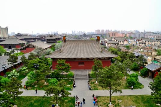 善化寺建筑高低錯(cuò)落,主次分明,左右對(duì)稱,是中國現(xiàn)存規(guī)模最大、最為完整的遼金時(shí)期建筑。現(xiàn)為大同市古建筑文物保管所辦公所在地。