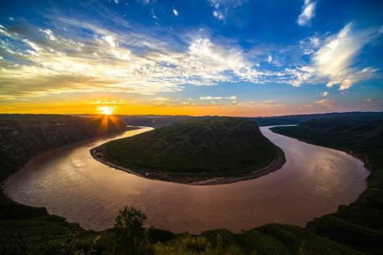 “天下黃河第一灣”位于山西省石樓縣辛關(guān)鎮(zhèn)馬家畔和陜西清澗縣玉家河鎮(zhèn)舍峪里村之間的黃河段,最佳觀景點為山西省石樓縣辛關(guān)鎮(zhèn)馬家畔。