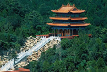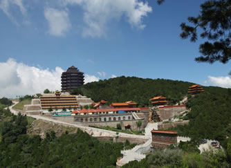 烏金山不僅有豐富的自然景致,而且還有數(shù)不盡的人文景觀。由于烏金山山高林密,氣候宜人,風(fēng)景秀美,靜謐清幽,歷朝歷代多有僧侶入山修行,更有文人墨客、達(dá)官顯貴前來觀瞻,因此便留下了許多人文遺跡。這里是佛教圣地五臺(tái)山的下院,曾被稱為文殊菩薩講經(jīng)的道場,于是便形成了以寺廟群落為主的諸多景觀。許多寺廟群都依山而建,金碧輝煌,氣勢(shì)恢弘。這些寺廟群大都分布在千頃碧綠的林海中。遠(yuǎn)遠(yuǎn)望去,就像茫茫綠海中時(shí)隱時(shí)現(xiàn)的海市蜃樓,顯得縹緲奇幻而又雄偉壯觀。