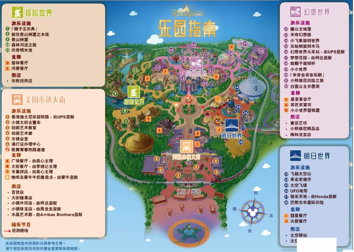 香港迪斯尼樂園位于大嶼山,環(huán)抱山巒,與南中國海遙遙相望,是一座融合了美國加州迪斯尼樂園及其他迪斯尼樂園特色于一體的主題公園。香港迪斯尼樂園包括四個主題區(qū):美國小鎮(zhèn)大街、探險世界、幻想世界、明日世界。每個主題區(qū)都能給游客帶來無盡的奇妙體驗。